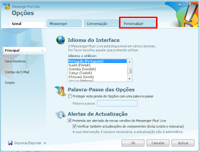 Depois de instalado, você abre o msn vai em Opção do Messenger Plus.